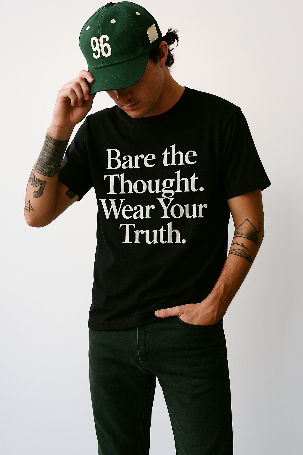 We design raw, honest pieces that spark conversation, challenge comfort zones, and remind people that the truest version of themselves is enough — bare, bold, and unapologetically human. -